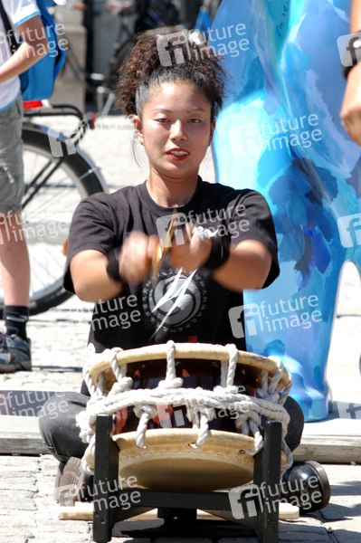 Photocall mit Yamato, den Trommlen aus Japan auf dem Berliner Bebelplatz im Kreis der Buddy Bären
