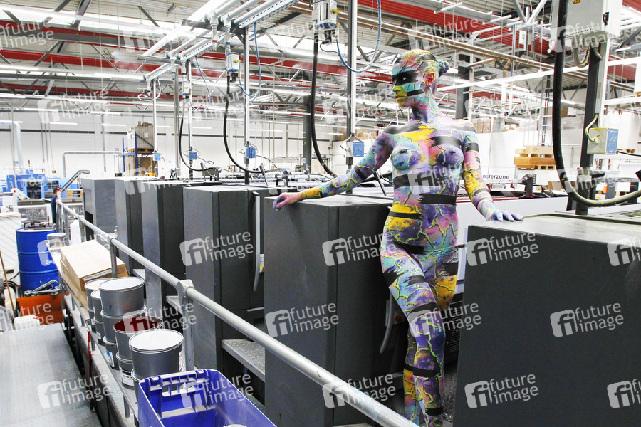 Jörg Düsterwald, einer der bekanntesten Bodypainting- und Bodyartkünstler Deutschlands macht auf seine ganz eigene Art auf die prekäre Situation freischaffender Künstler während der Corona-Pandemie aufmerksam: Unter dem Hashtag #WirzeigenFarbe hat der Hamelner Künstler in der Produktionshalle der Druckerei QUBUS media mit seinem Model Lisa ein ausdruckstarkes Live-Bodypainting inszeniert - denn Künstlerinnen und Künstler wie er sehen und fühlen sich derzeit wortwörtlich 'ausgezogen bis aufs letzte Hemd'. Und nichts symbolisiert diesen bekannten Spruch besser als ein Bodypainting auf nackter Haut in einer Umgebung, in der es jeden Tag um Farbe geht. Die Live-Performance fand mit dem zeitgleichen Druckstart von Jörg Düsterwald's neuem Premiumkalender 'Bodypainting in Nature 2021' statt. Hannover, 14.07.2020