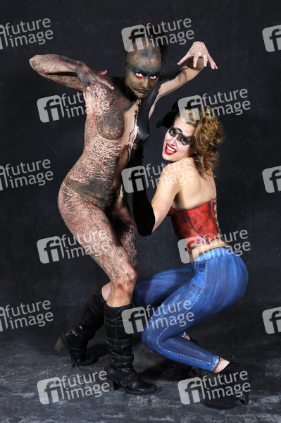 Models Caro und Kartin als Schöne und Biest beim Photoshooting zum 20 jährigen Künstlerjubiläum vom Bodypaint-Künstler Jörg Düsterwald im Photohaus. Hameln, 09.11.2013