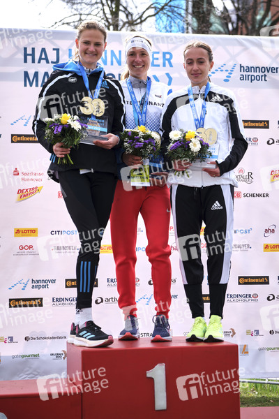 Rabea Schöneborn (Deutschland), Domenika Mayer (Deutschland) und Matea Parlow Kostro (Kroatien) beim 30. HAJ Marathon. Hannover, 03.04.2022