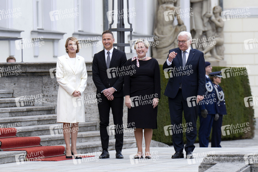 Elke Büdenbender, Björn Skulason, Halla Tomasdottir und Frank-Walter Steinmeier beim Empfang der Präsidentin von Island mit militärischen Ehren im Schloss Bellevue. Berlin, 21.10.2024