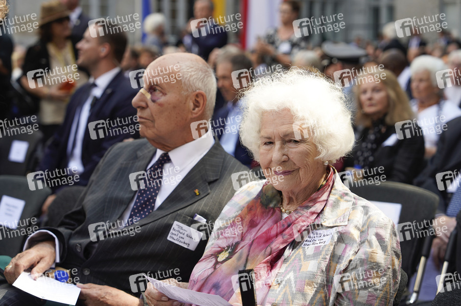 Berthold Maria Schenk Graf von Stauffenberg und Mechthild Schenk Gräfin von Stauffenberg bei der Gedenkveranstaltung zum 80. Jahrestag des Aufstands gegen Nationalsozialistische Gewaltherrschaft mit Kranzniederlegung auf dem Ehrenhof des Bendlerblocks.Berlin, 20.07.2024