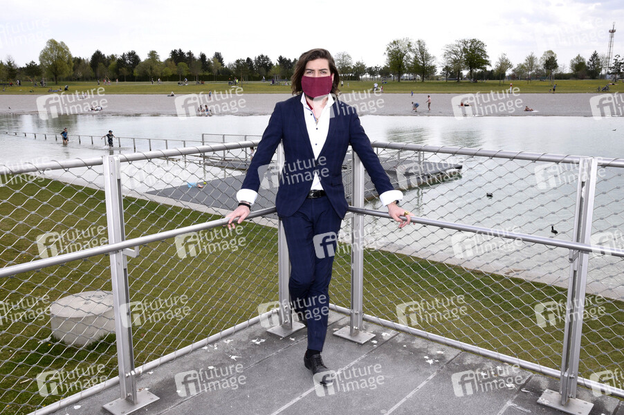 Pat Wind mit einem Mundschutz von TrachtenWahnsinn bei einem exklusiven Fototermin während eines Spüaziergangs im Riemer Park. München, 18.04.2020