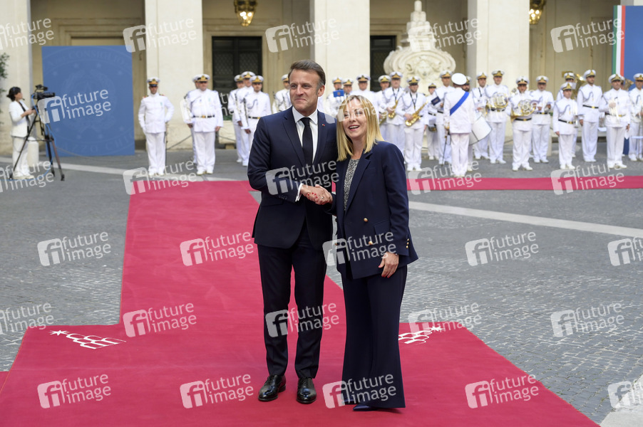 Politik, Staatsbesuch, Staatsvisite, Gespräch, bilaterale Gespräche, Treffen, Diplomatie, Staatsgast, Politiker, Staatspräsident, von Frankreich, Renaissance, RE, Politikerin, Ministerpräsidentin von Italien, Fratelli d'Italia, FdI