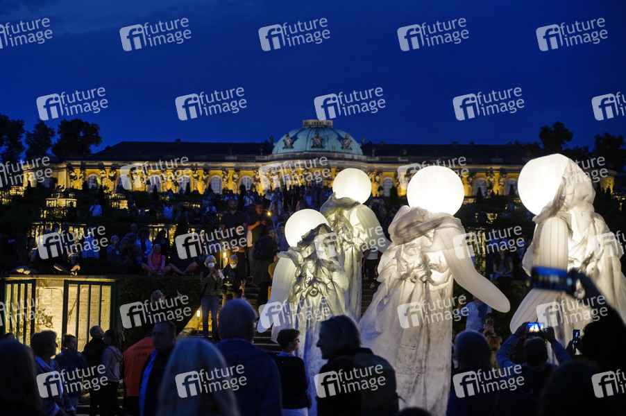 Company Quidam's bei der Potsdamer Schlössernacht 2021 im Schlosspark Sanssouci. Potsdam, 21.08.2021