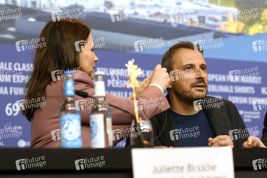 Juliette Binoche und Safy Nebbou bei der Pressekonferenz zu 'Celle que vous croyez / Who You Think I Am' auf der Berlinale 2019 / 69. Internationale Filmfestspiele Berlin im Hotel Grand Hyatt. Berlin, 10.02.2019