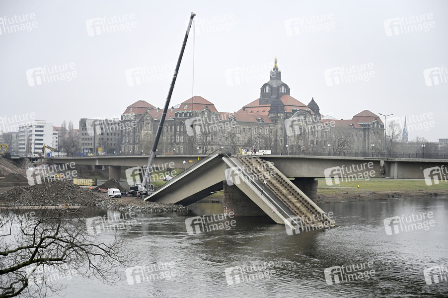 In Dresden ist am 11. September 2024 ein Teil der Carolabrücke eingestürzt. Die Ursachen für die Schäden liegen in der Bauzeit. Alle Brückenzüge sind betroffen und müssen abgerissen werden. Dresden, 06.02.2025
