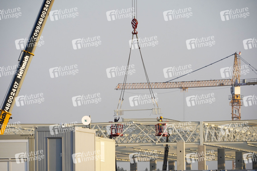 Tesla, Elektroauto, Elektrofahrzeuge, PKW, Auto, Model Y, Model 3, Großfabrik, Automobilhersteller, Autobauer, Elektromobilität, umweltfreundlich, Baustelle, Bauen, Baubranche, Bau-Branche, Bauarbeiter, Bauarbeiten, Großbaustelle, Kran, Kräne, Baustelle
