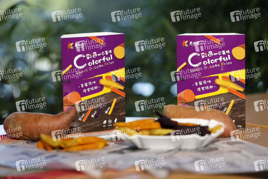 Bunte Süßkartoffel-Pommes unter den Top-Innovationen auf der Lebensmittelmesse Anuga, der weltweit führenden Ernährungsmesse für Handel, Gastronomie und Außer-Haus-Markt, 2021 in der Koelnmesse. Köln, 08.10.2021
