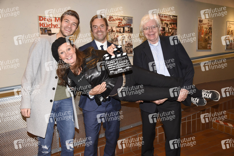 Manuel Niedermeier, Barbara Weinzierl, Sebastian Feicht und Oliver Kübrich beim Fototermin am Set des Kinofilms 'Anna' im Theater im Roßstall. Germering, 11.11.2021