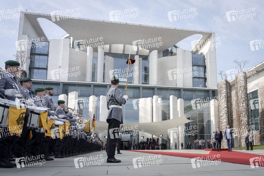 Andrej Babis und Friedrich Merz beim Empfang des Ministerpräsidenten der Tschechischen Republik mit militärischen Ehren zu einem gemeinsamen Gespräch mit anschließendem Pressestatement im Bundeskanzleramt. Berlin, 10.03.2026