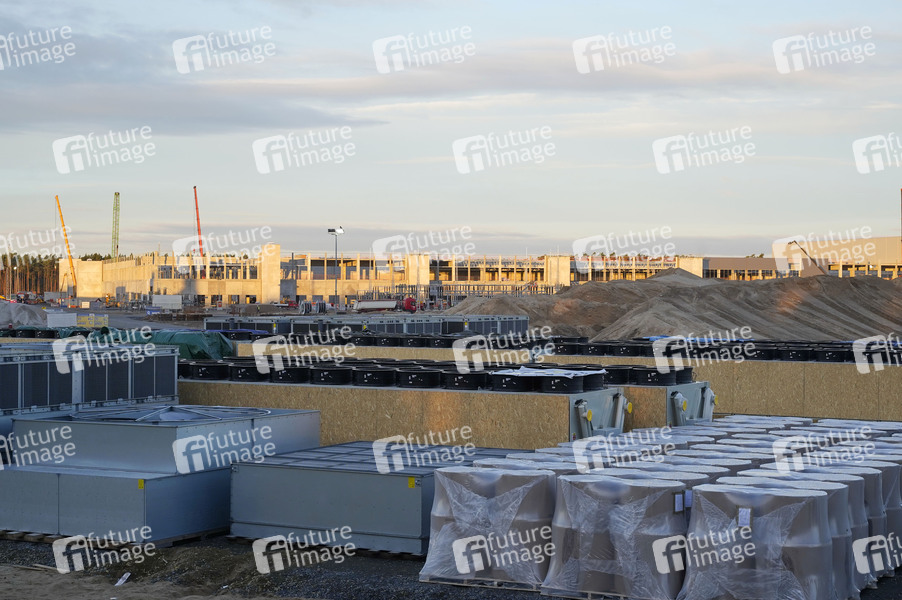 Elektroauto, Elektrofahrzeuge, PKW, Auto, Model Y, Model 3, Großfabrik, Automobilhersteller, Autobauer, Elektromobilität, umweltfreundlich, vorläufige Genehmigung, Batteriefabrik, Großprojekt, Investition, Baugenehmigung, Vorab-Genehmigung, E-Auto-Fabrik, Umwelt, Klimaschutz, Baustelle, Bauen, Baubranche, Bau-Branche, Bauarbeiten, Großbaustelle, Kran, Kräne, Baustelle, Wirtschaft, Autoproduktion