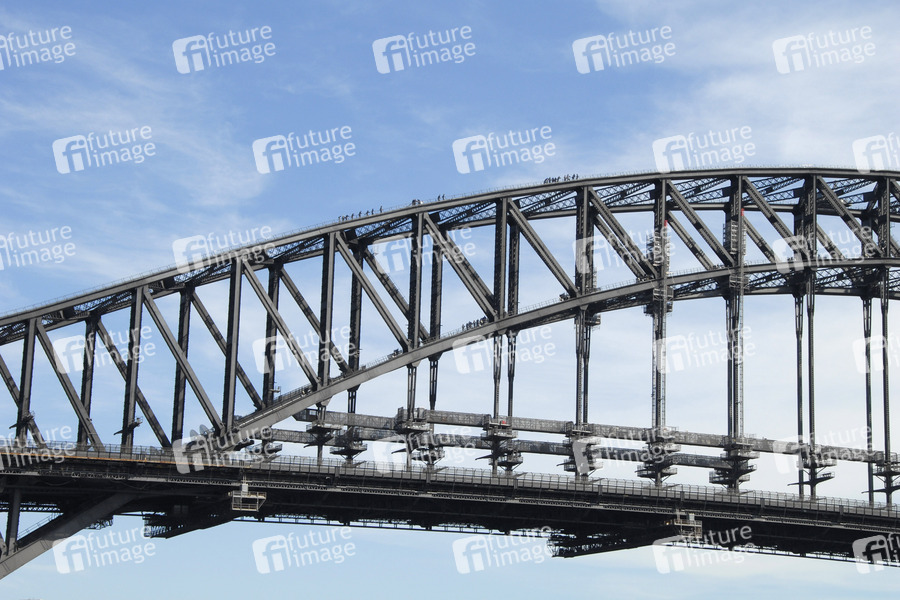 Bogenbrücke, Hauptverbindung zwischen Sydneys Nord- und Südküste über den Hafen von Sydney (Port Jackson), Länge 1149 m, Breite 49 m, Höhe 134 m, Bauzeit 28.07.1923 bis 19.01.1932