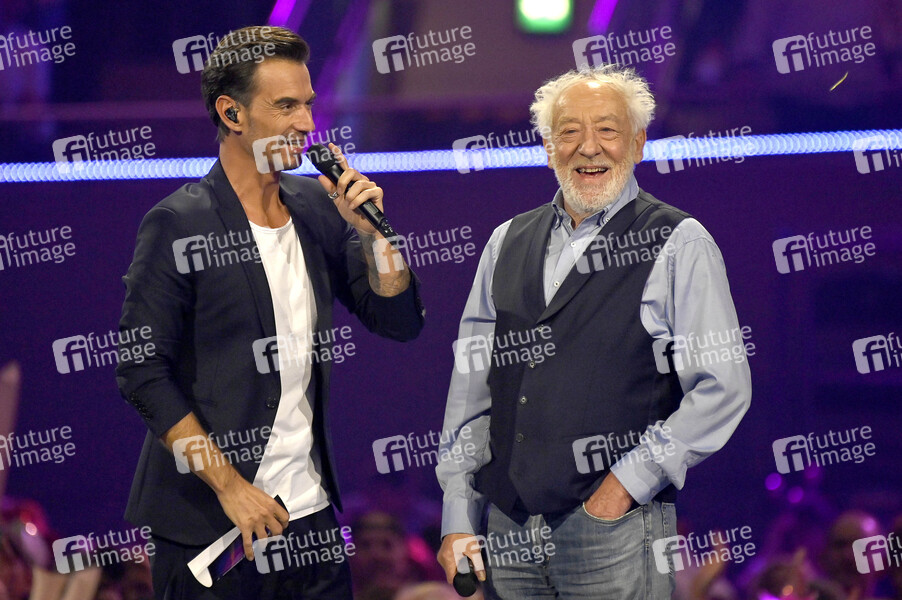 Florian Silbereisen und Dieter Hallervorden in der TV Show 'Schlagerbooom 2021 - Alles funkelt! Alles glitzert!' in der Dortmunder Westfalenhalle. Dortmund, 23.10.2021