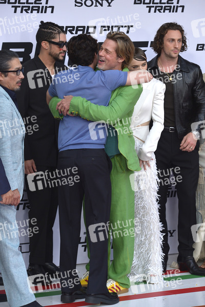 Hiroyuki Sanada, Bad Bunny, Logan Lerman, Brad Pitt, Joey King und Aaron Taylor-Johnson bei der Premiere des Kinofilms 'Bullet Train' im Regency Village Theatre. Los Angeles, 01.08.2022