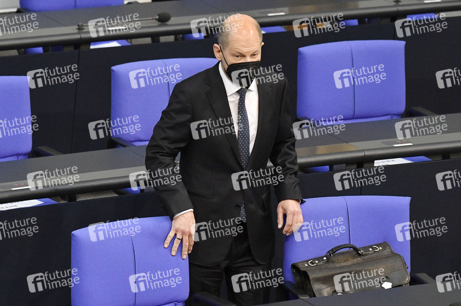 Olaf Scholz in der 225. Sitzung des Deutschen Bundestages im Reichstagsgebäude. Berlin, 23.04.2021