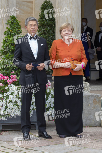 Angela Merkel mit Ehemann Joachim Sauer und Markus Söder mit Ehefrau Karin Baumüller bei der Eröffnung der Richard-Wagner-Festspiele 2021 mit der Premiere von Richard Wagners 'Der fliegende Holländer' im Bayreuther Festspielhaus. Bayreuth, 25.07.2021