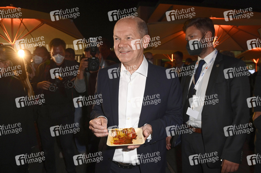 Olaf Scholz beim 'Triell - Dreikampf ums Kanzleramt' von ARD und ZDF mit den Kanzlerkandidaten im Studio Berlin-Adlershof. Berlin, 12.09.2021