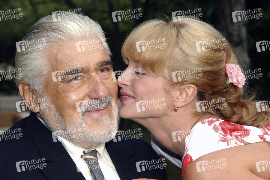 Mario Adorf und Lara Joy Körner beim Fototermin am Set des ARD-Fernsehfilms 'Vera - Die Frau des Sizilianers'. Meerbusch, 09.01.2003