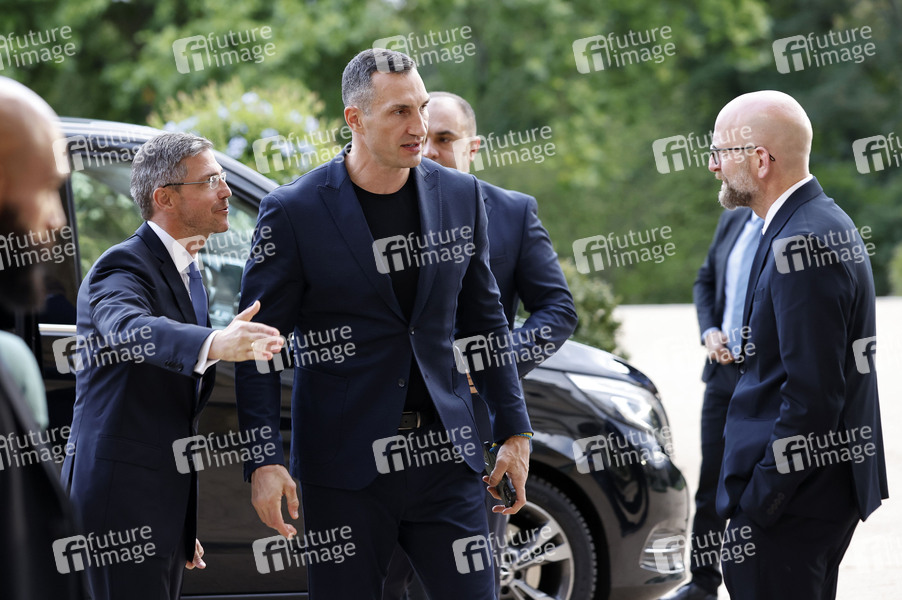 Mike Schubert, Wladimir Klitschko und Moritz van Dülmen bei der Verleihung des M100 Media Award 2022 für das ukrainische Volk in der Orangerie Sanssouci. Potsdam, 15.09.2022