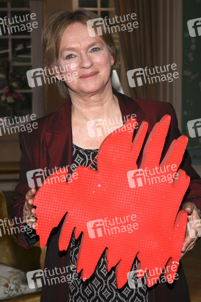 Fototermin mit Elke Heidenreich als Gaststar in der ARD-Soap 'Verbotene Liebe' im MMC Studio 37/38, Köln
