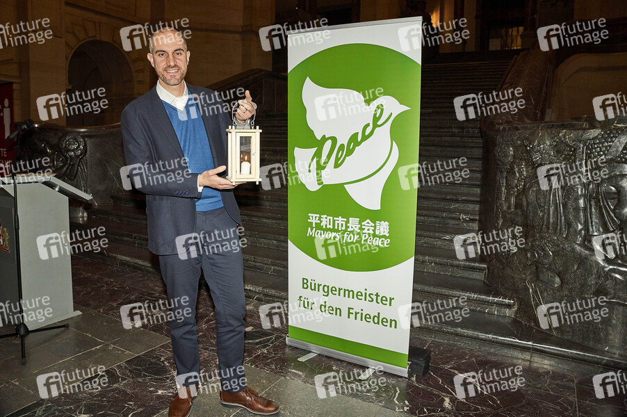 Oberbürgermeister Belit Onay nimmt im Neuen Rathaus das Friedenslicht aus Bethlehem entgegen. Hannover, 15.12.2020