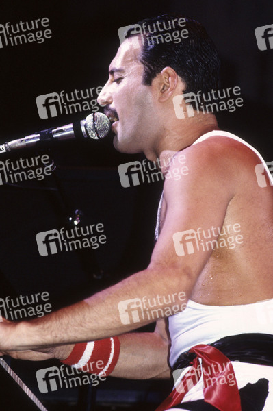 Freddie Mercury von Queen live bei einem Konzert der 'Works'-Tour in der Wembley Arena. London, 07.09.1984