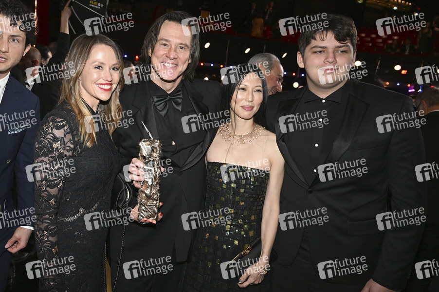 Jim Carrey mit Freundin Mina, Tochter Jane und Enkel Jackson bei der 51. César-Verleihung 2026 im Olympia-Theater. Paris, 26.02.2026