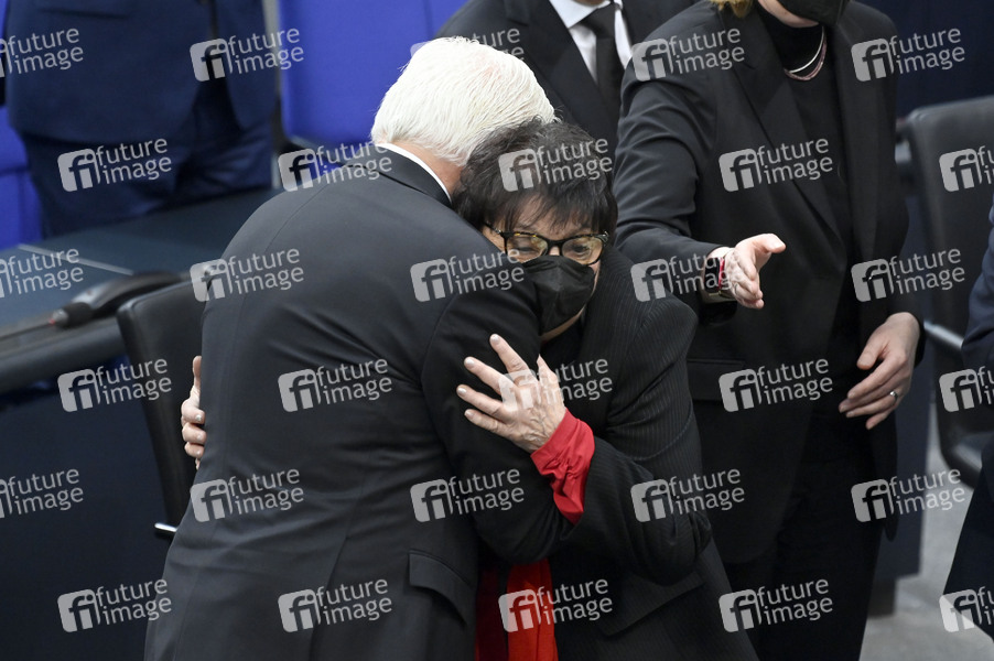 Frank-Walter Steinmeier und Inge Auerbacher bei der Gedenkstunde zum Tag des Gedenkens an die Opfer des Nationalsozialismus anlässlich des Jahrestages der Befreiung des NS-Vernichtungslagers Auschwitz im Deutschen Bundestag im Reichstagsgebäude. Berlin, 27.01.2022