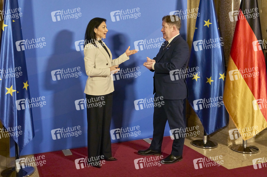 Katherina Reiche (Bundesministerin für Wirtschaft und Energie) und Darragh O'Brien (Minister für Klima, Energie und Umwelt, Irland) beim 3. internationalen Nordsee-Gipfel 2026 auf Ebene der Regierungschefinnen und -chefs sowie der Energieministerinnen und Energieminister im Rathaus. Ziel des Gipfels ist es, den grenzüberschreitenden Ausbau der Offshore-Windenergie, den Wasserstoffmarkt und zugleich eine leistungsfähige und vernetzte Offshore-Infrastruktur im gesamten Nordseeraum weiter voranzutreiben. Hamburg, 26.01.2026