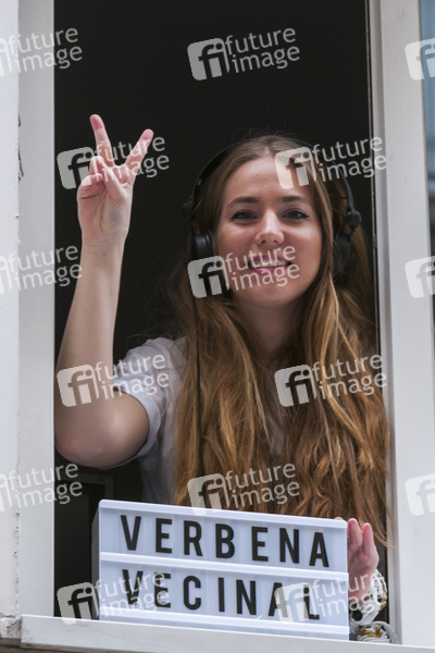Nachbarschafts-Balkonparty in der Calle de las Maldonadas - Tag 35 seit Verhängung des Ausnahmezustands durch die spanische Regierung wegen der Coronakrise. Madrid, 18.04.2020