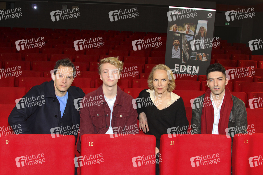 Trystan Pütter, Bruno Alexander, Juliane Köhler und Adnan Jafar beim Fototermin zum Fernsehfilm 'Eden' im Abaton Kino. Hamburg, 18.03.2019