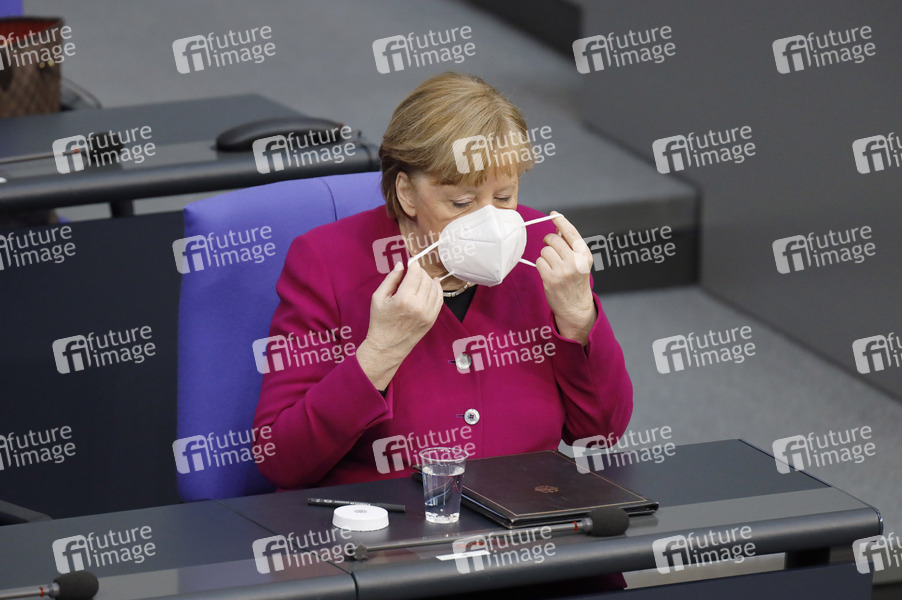 Angela Merkel in der 218. Sitzung des Deutschen Bundestages im Reichstagsgebäude. Berlin, 25.03.2021