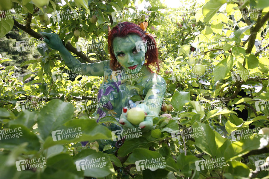 Bodypainting, Erotik, Frau, nackt, draußen, weiblich, Apfel, Apfelbaum, Baum, woman, nude, outdoor, female, erotic, apple, tree