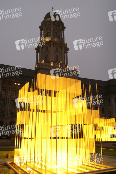 Berlin Mitte, Rotes Rathaus, Berliner Rathaus, Brunnen, Licht, IIllumination