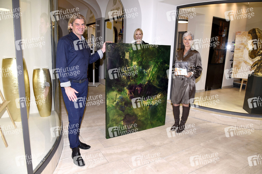 Dirk Eichfeld-Kilian, Simone von Anhalt und Karin Neumeier bei der Vernissage 'Farb-Pracht' von Simone von Anhalt im Salon Figaro. München, 19.10.2020