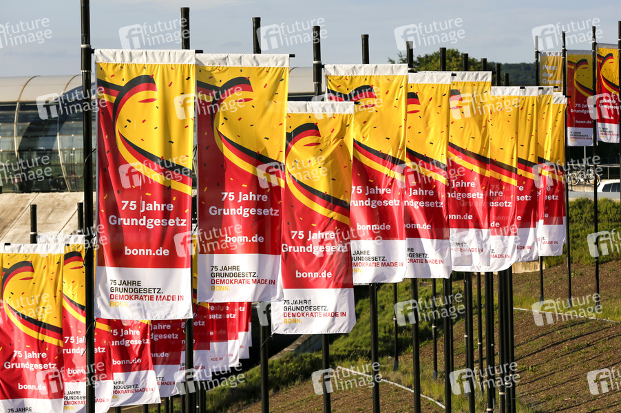 Am 22. Mai 2024 wurde in Bonn der Platz des Grundgesetzes eingeweiht. Hiermit wurde die Bedeutung von Bonn als Verfassungsstadt unterstrichen. 200 Fahnenmasten sind mit dem Schriftzug '75 Jahre Grundgesetz Demokratie Made in Bonn' versehen. Bonn, 25.05.2024