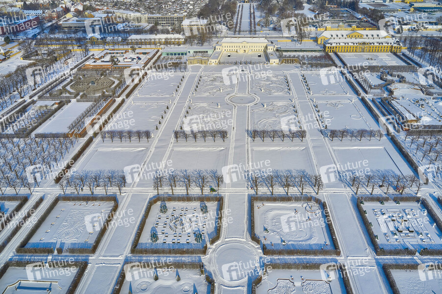 Luftaufnahme, Großer Garten, Barockgarten, Sehenswürdighkeit, Sightseeing, Tourismus, Veranstaltungsort, Berggarten, Winter, Schnee