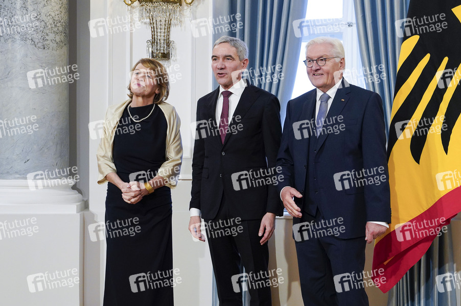 Elke Büdenbender, Stephan Harbarth und Frank-Walter Steinmeier beim Neujahrsempfang des Bundespräsidenten im Schloss Bellevue. Berlin, 10.01.2025