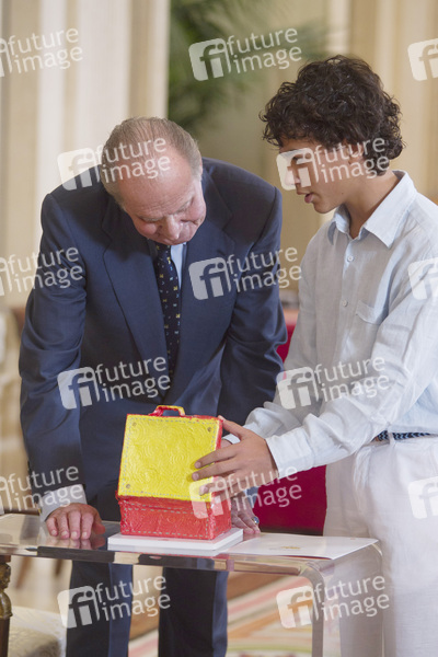 König Juan Carlos empfängt die Gewinner des 'Qué es un Rey para ti' Schulwettbewerbs im Zarzuela Palast, Madrid