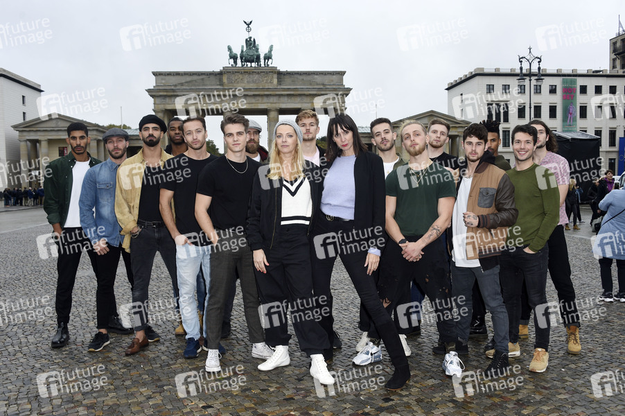 20 internationale Tänzer bei der Präsentation des Casts der Show 'Magic Mike Live' am Brandenburger Tor. Berlin, 08.10.2019