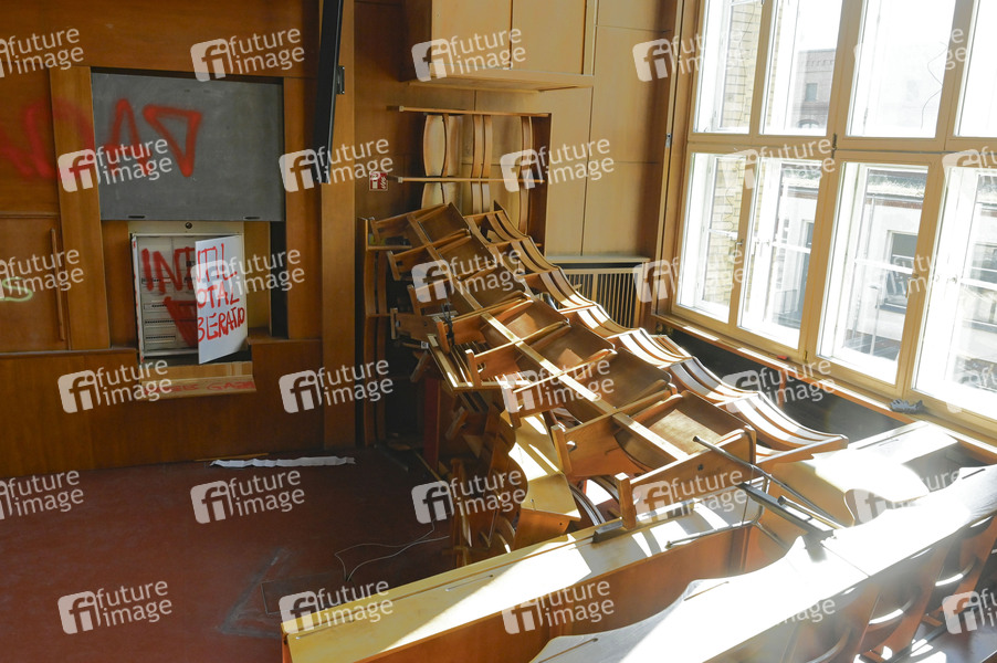 Nach einer Besetzung des Emil-Fischer-Saals der Humboldt-Universität durch propalästinensische Aktivisten die durch die Polizei geräumt wurde, sind offenbar so umfangreiche Schäden entstanden, dass der Raum nicht mehr nutzbar ist. Berlin, 22.04.2025