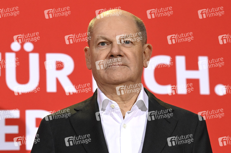Olaf Scholz bei der Pressekonferenz zum Beschluss des SPD-Wahlprogramms für die Bundestagswahl 2025 im Willy-Brandt-Haus. Berlin, 17.12.2024