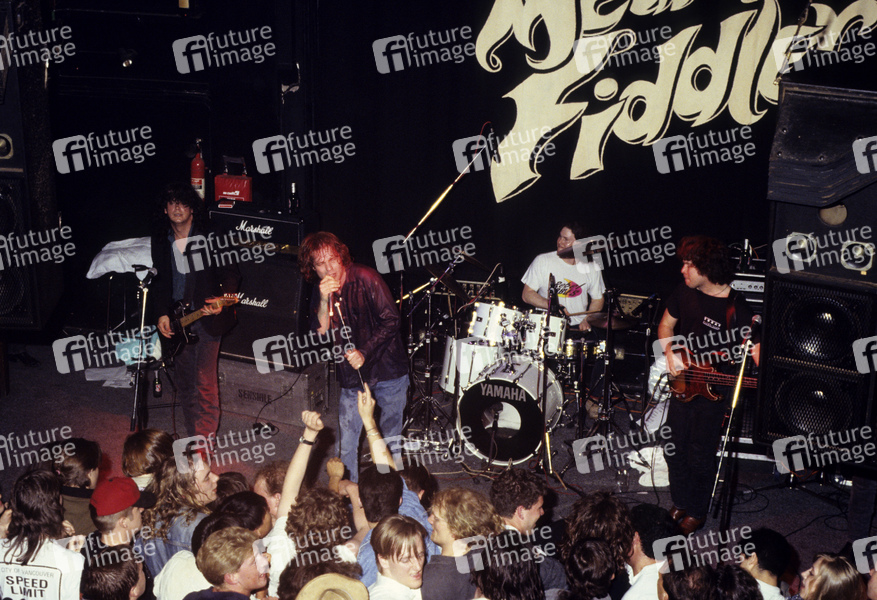 Paul Langlois, Gord Downie, Johnny Fay und Gord Sinclair von The Tragically Hip live im Mean Fiddler. London, 11.12.1990