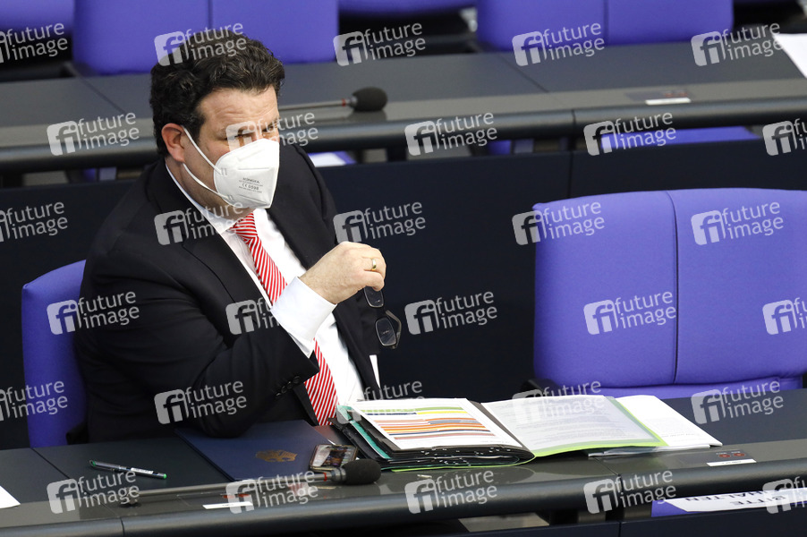 Hubertus Heil in der 210. Sitzung des Deutschen Bundestages im Reichstagsgebäude. Berlin, 12.02.2021