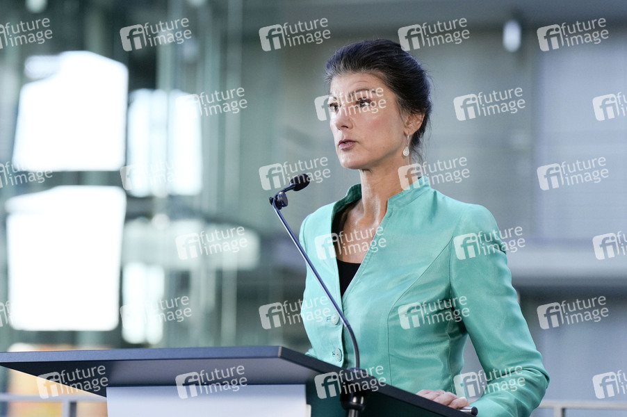 Sahra Wagenknecht bei einem Pressestatement des BSW im Reichstagsgebäude. Berlin, 15.10.2024