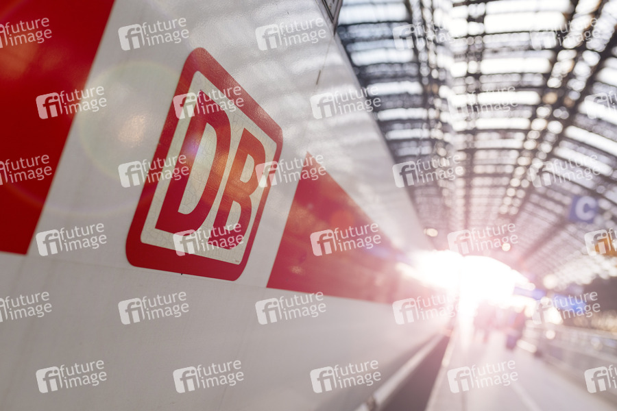 DB-Logo an einem ICE im Kölner Hauptbahnhof. Köln, 12.05.2019