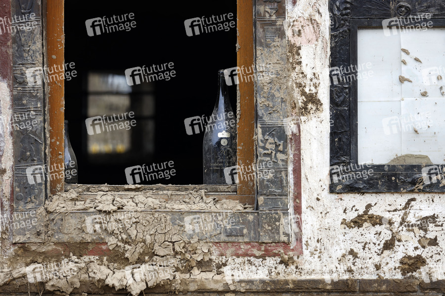 Nach dem Jahrhunderthochwasser in der Eifel durch heftige Regenfälle und Dauerregen mit Überschwemmungen und Überflutungen haben die Aufräumarbeiten im Ahrtal große Fortschritte gemacht. Einheiten von Polizei, THW, Bundeswehr und Feuerwehr mitsamt vielen freiwilligen Helfern haben Straßen geräumt, Schutt und Schlamm entfernt und die Menschen versorgt. Der Wiederaufbau wird trotzdem Jahre dauern. Im Bild Flutschäden in der Ortschaft Altenahr, in der die Flut viele Häuser zerstörte, 08.08.2021