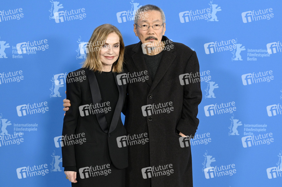Isabelle Huppert und Hong Sang-soo beim Photocall zum Kinofilm 'A Traveler's Needs / Yeohaengjaui pilyo' auf der Berlinale 2024 / 74. Internationale Filmfestspiele Berlin im Hotel Grand Hyatt. Berlin, 19.02.2024