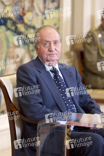 König Juan Carlos empfängt die Gewinner des 'Qué es un Rey para ti' Schulwettbewerbs im Zarzuela Palast, Madrid